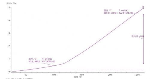 圖6 PCB無銅區樣品TMA測試曲線(Z-CTE)