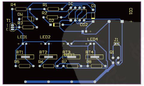 Protel 2004中布線時首先要設(shè)置好布線規(guī)則,以滿足安全原則等電氣要求。根據(jù)充電器電路的實(shí)際要求,這里設(shè)置安全間距為10mil,頂層布線、普通線寬10mil、電源線20mil、地線30mil.布線采用自動布線,對不合乎要求的地方后可以進(jìn)行手工修改。布線時在滿足安全原則等電氣要求的前提下,導(dǎo)線要精簡,盡可能短,盡量少拐彎,力求導(dǎo)線簡單明了。