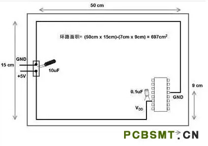 電路板中電子元器件和線路受電磁干擾(EMI)的可能性降低了679/12.8倍或約54倍