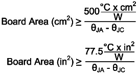 所需的PCB板面積近似值未考慮到散熱孔所發揮的作用,這些散熱孔將熱量從頂部金屬層(封裝連接至PCB)向底部金屬層傳遞。底層用作二表面層,對流可以從這里將板上的熱量傳送出去。為了使板面積近似值有效,需使用至少8~10個散熱孔。散熱孔的熱阻近似于下列方程式值。