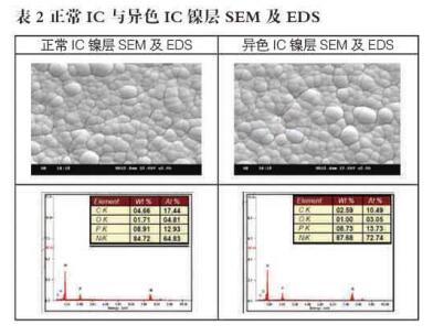 2.2.3正常IC與異色IC鎳層SEM及EDS分析