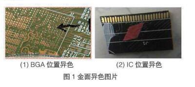 (3) 對比本廠沉金和外發(fā)沉金都有BGA或IC異色現(xiàn)象,說明沉金藥水不是導致沉金板異色的主要原因;