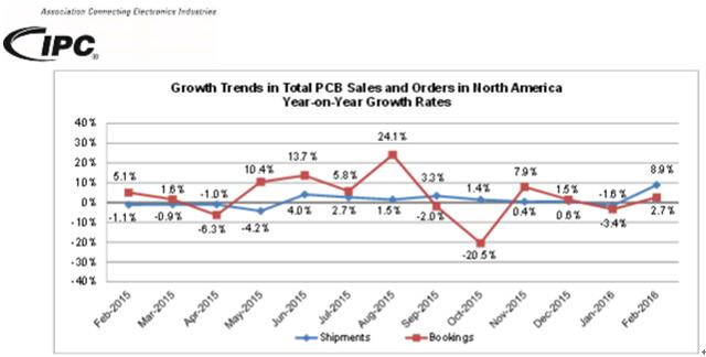 來(lái)源:2016年2月份北美PCB銷(xiāo)量反彈
