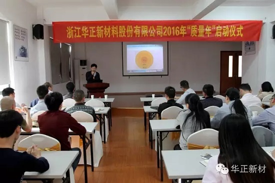 4月19日下午3時30分,華正新材公司二樓培訓室內2016年浙江華正新材料股份有限公司“質量年”啟動儀式拉開帷幕。
