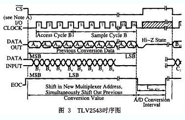TLC2543是TI公司的帶串行控制和11個輸入端的12 位、開關電容逐次逼近型A/D轉換器。 片內轉換器有高速、高精度和低噪音的特點。 TLC2543工作過程分為兩個周期:I/O周期和轉換周期。I/O周期由外部時鐘SCLK決定,延續(xù)8、12或16個時鐘周期,同時進行兩種操作: 在SCLK上升沿以MSB方式輸入8位數據到片內寄存器;在SCLK下降沿以MSB 方式輸出8、12、16位轉換結果。轉換周期在I/O周期的后一個SCLK下降沿開始,直到EOC信號變高,指示轉換完成。 為了與TLV5618的I/O周期一致,采用了MSB方式,使用CS的16 時鐘傳送的時序。其操作時序如圖3 所示。杭州PCB|杭州smt